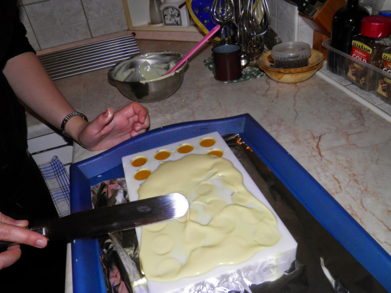 lehúzom a maradék csokoládét a bonbonforma aljáról.Ezt párszor megismétlem.
